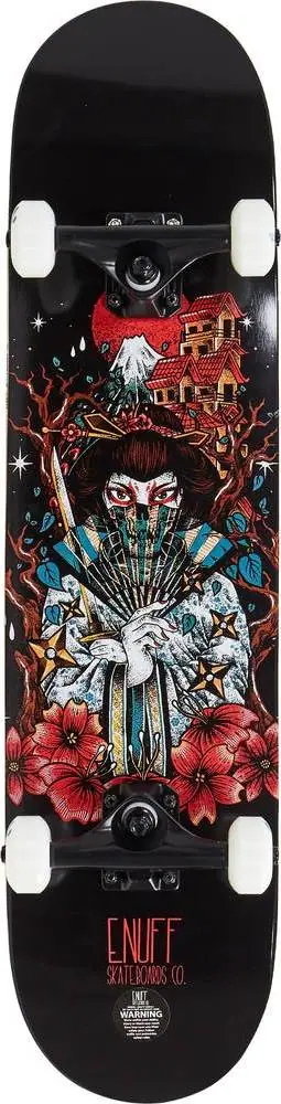 The Enuff Nihon skateboard is a really nice entry-level board which enables you to learn all the basics of skateboarding. It is the optimal setup to tackle obstacles at the skatepark and in the streets. It comes with a double kick-tail deck that allows you to pop your tricks with either end of the board. Being already fully assembled with all the right parts, this complete board is pretty much ready to ride right out of the box.