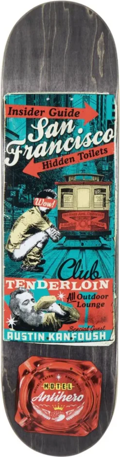 The Antihero Motel 18 is a high performance skateboard deck. It is made of a combination of 7-ply maple and epoxy and wood. You will experience great pop thanks to the maple construction.